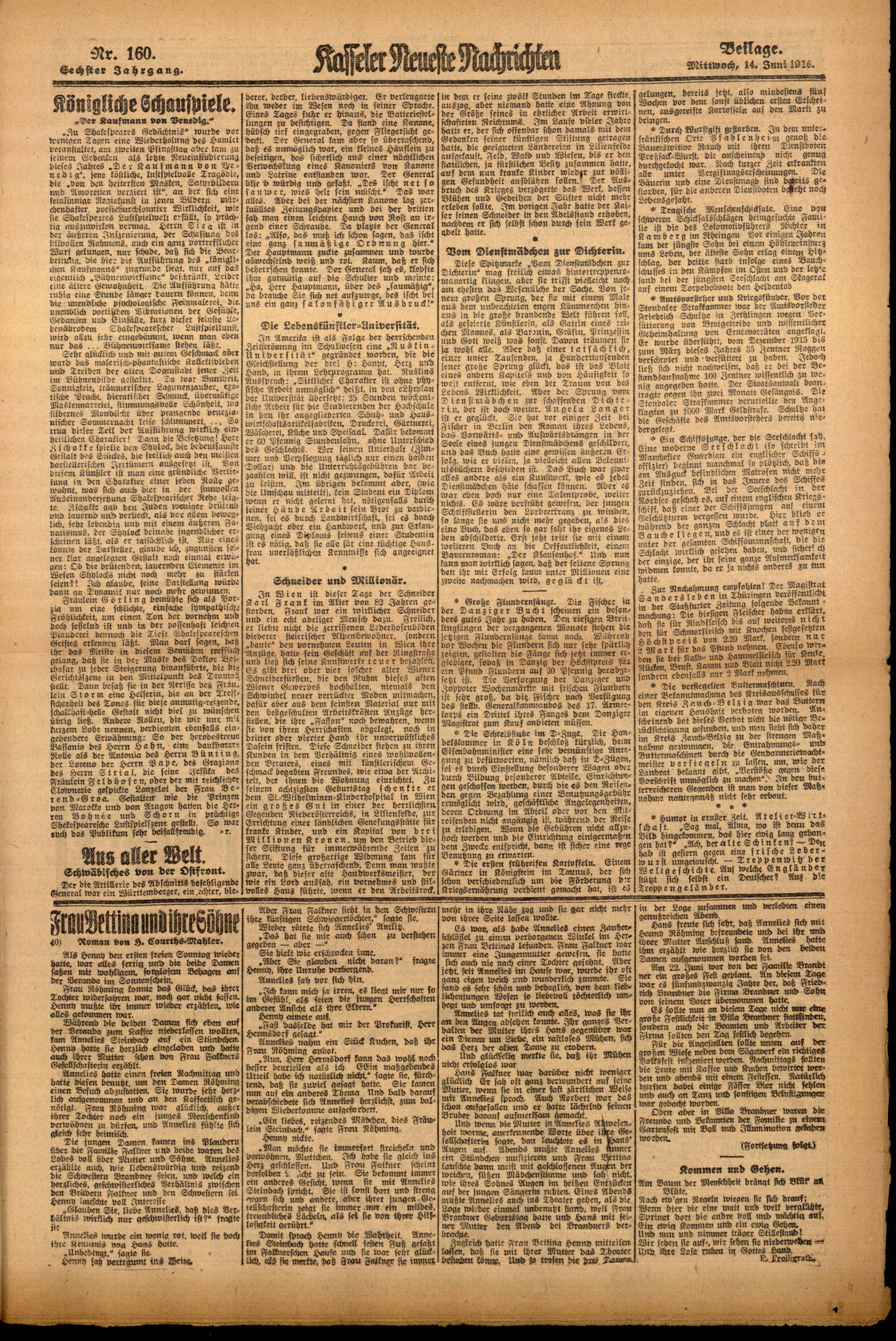 Casseler neueste Nachrichten. 1914-1918