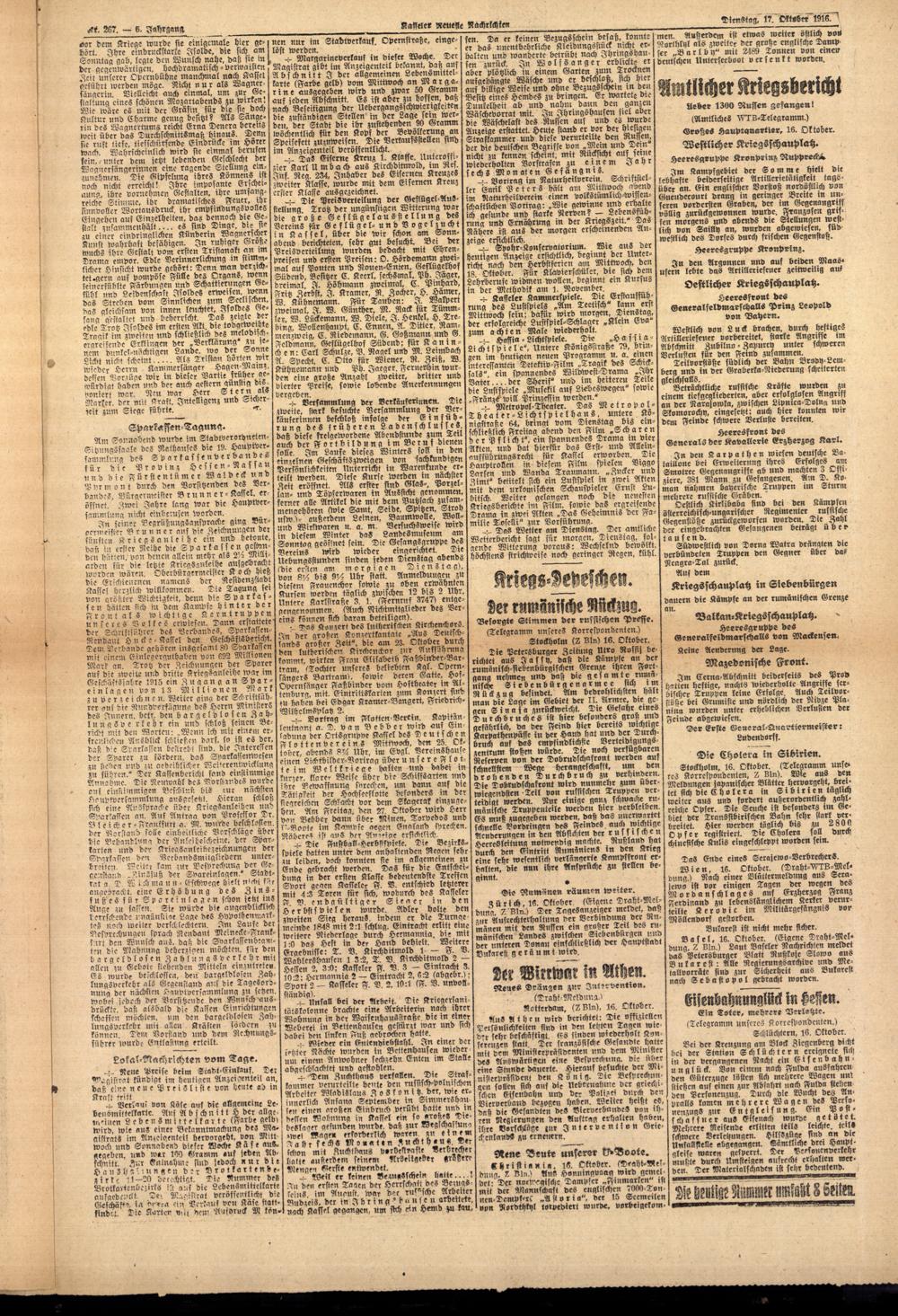 Casseler neueste Nachrichten. 1914-1918
