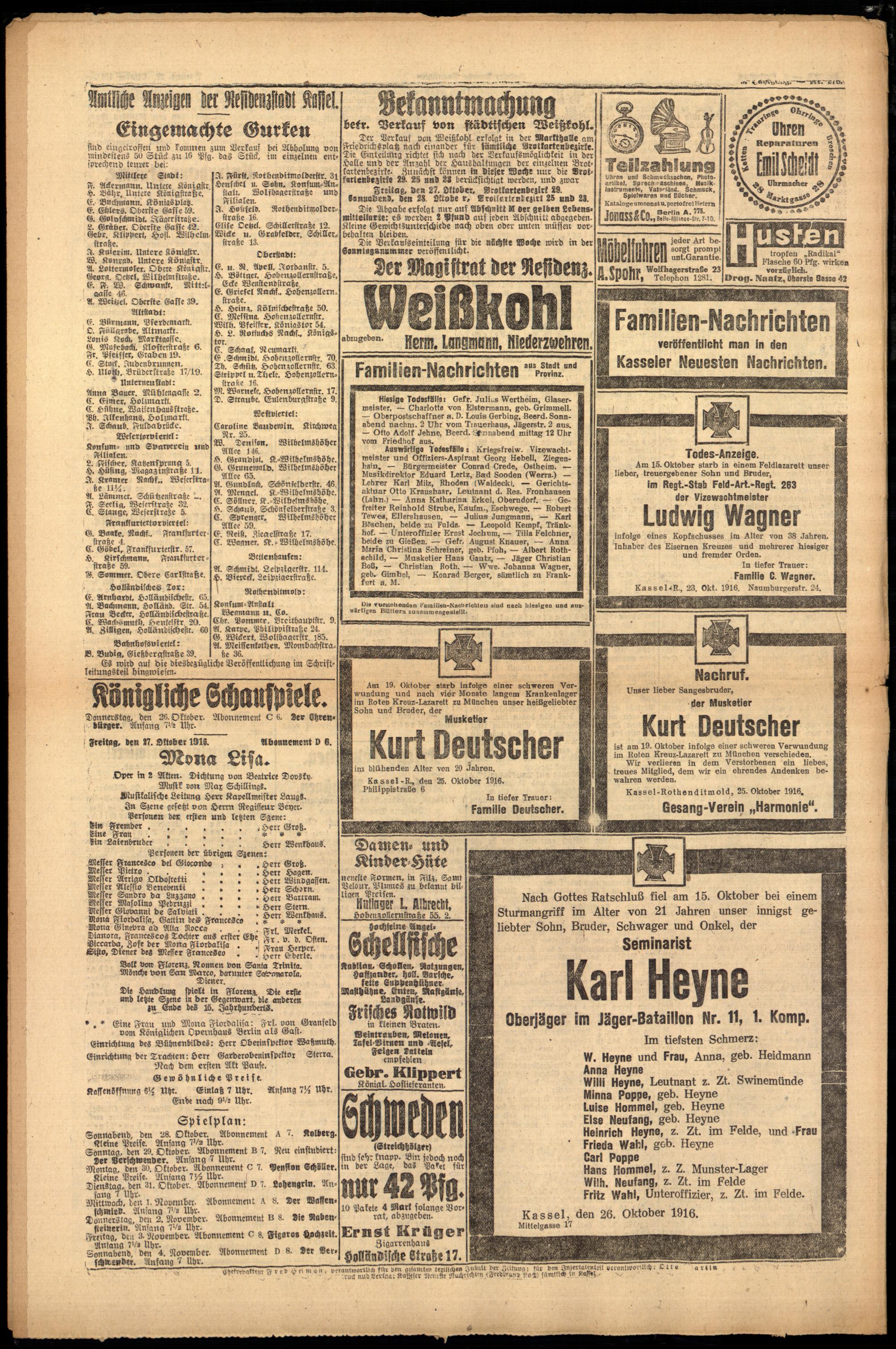 Casseler neueste Nachrichten. 1914-1918