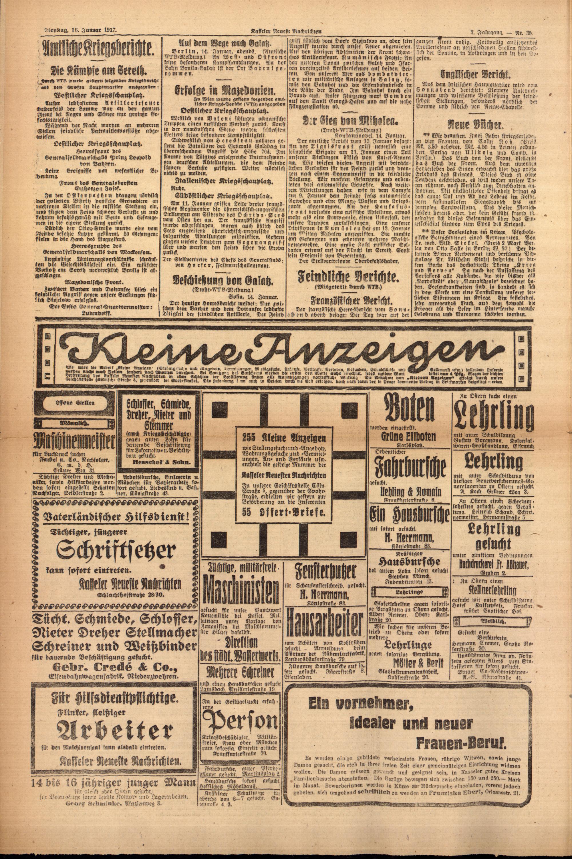 Casseler neueste Nachrichten. 1914-1918