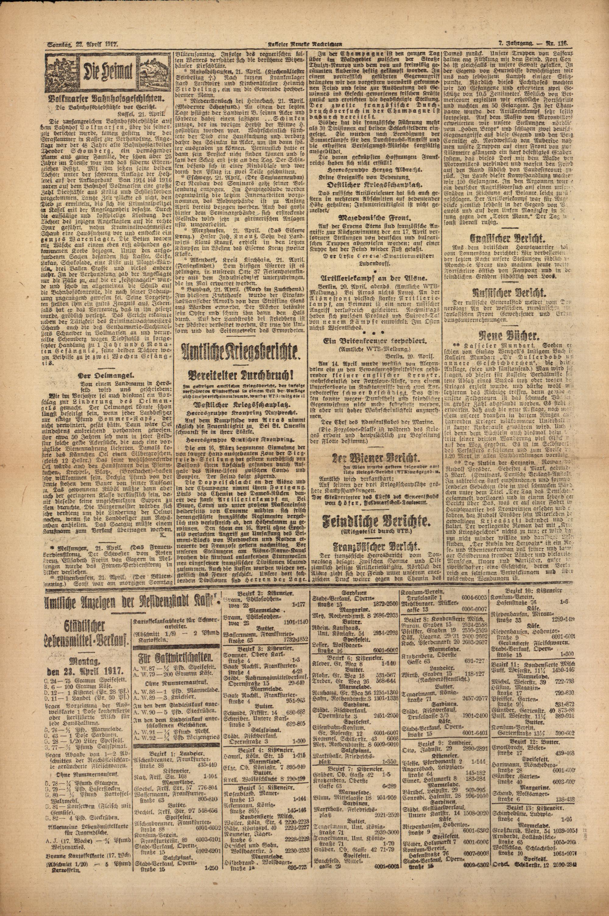 Casseler neueste Nachrichten. 1914-1918