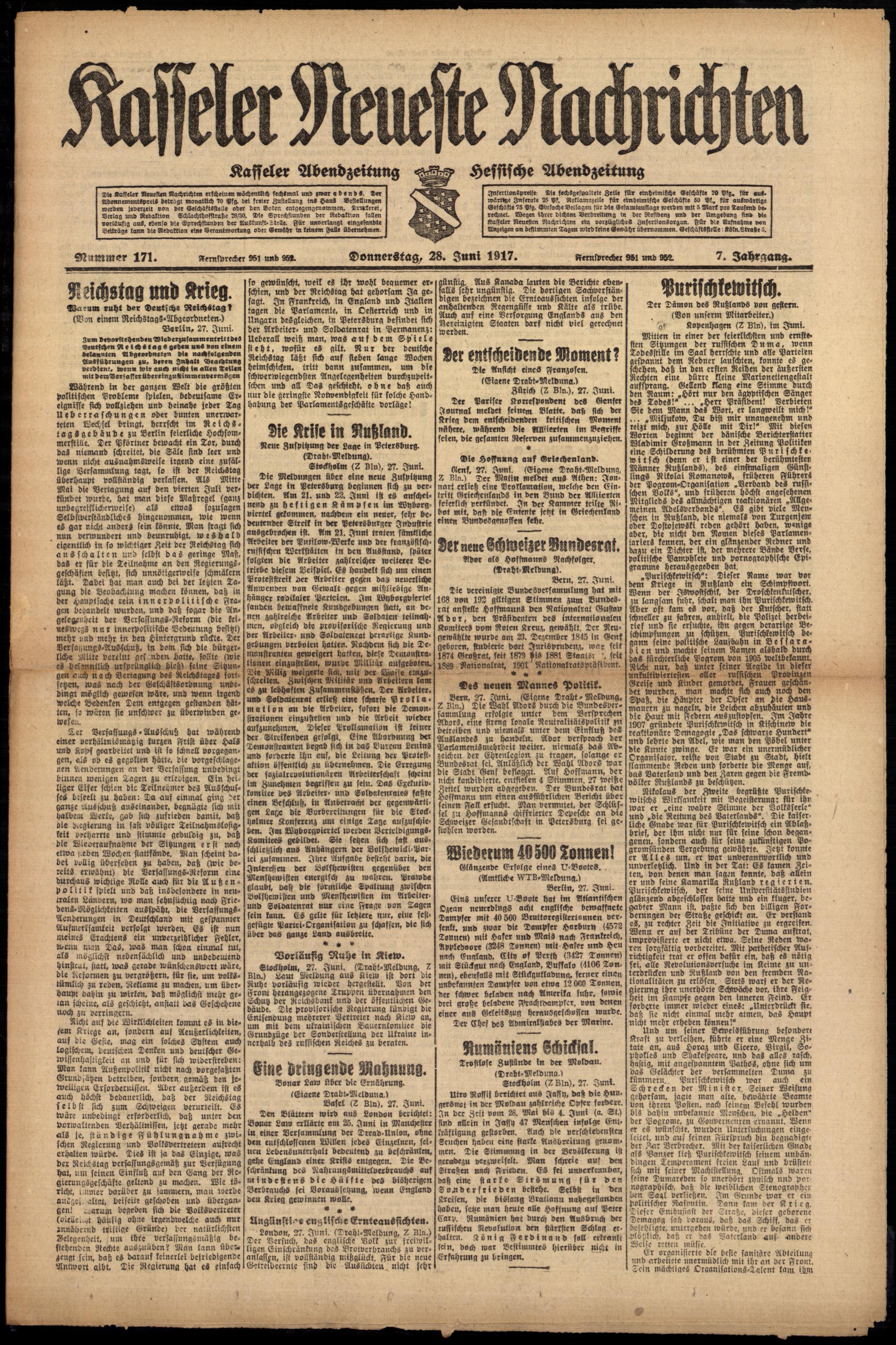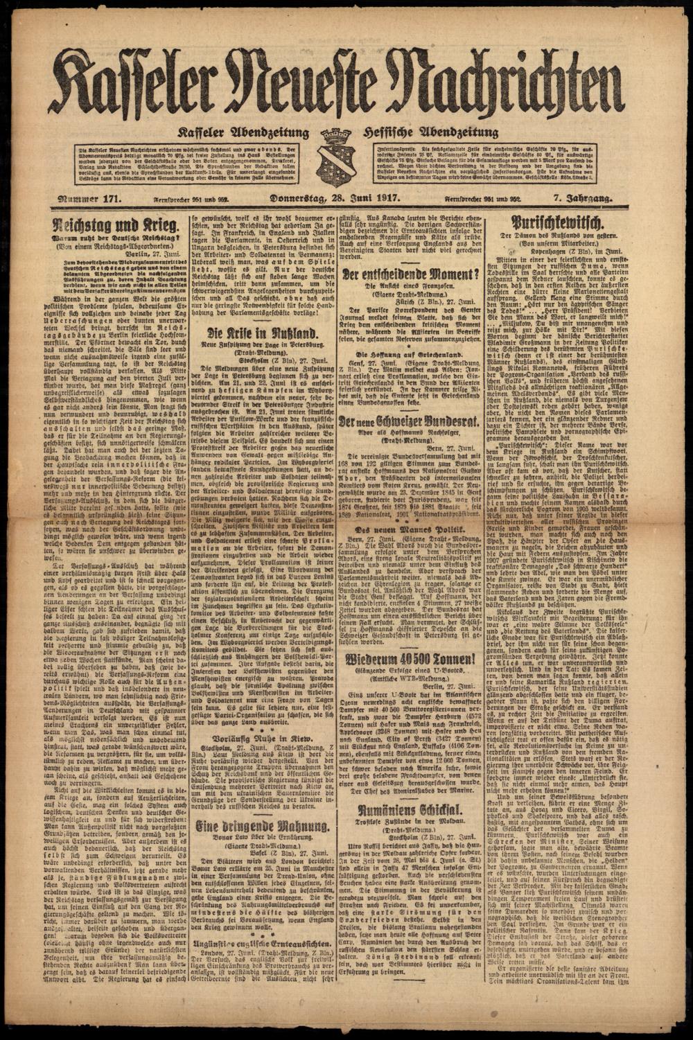 Casseler neueste Nachrichten. 1914-1918