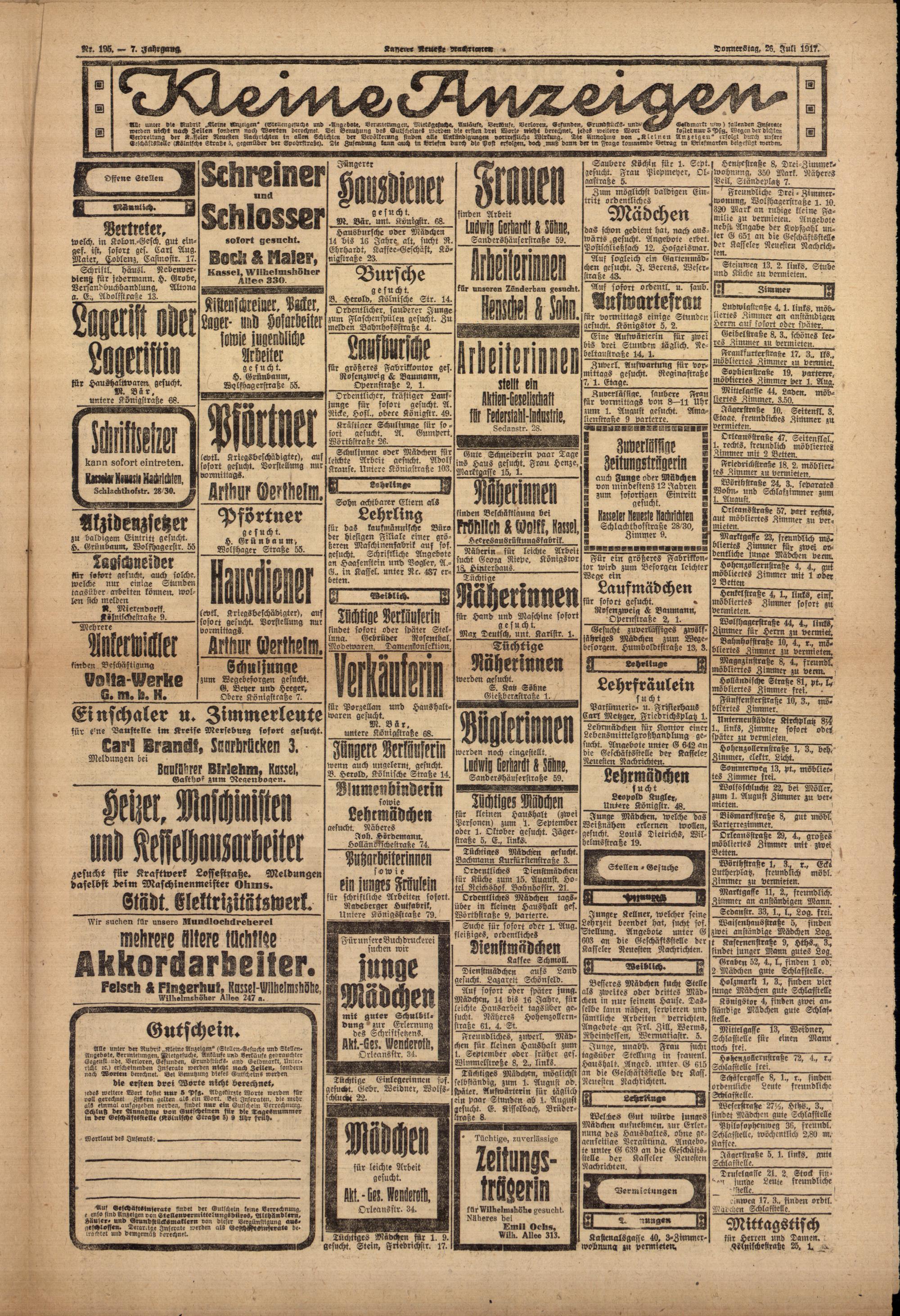 Casseler neueste Nachrichten. 1914-1918