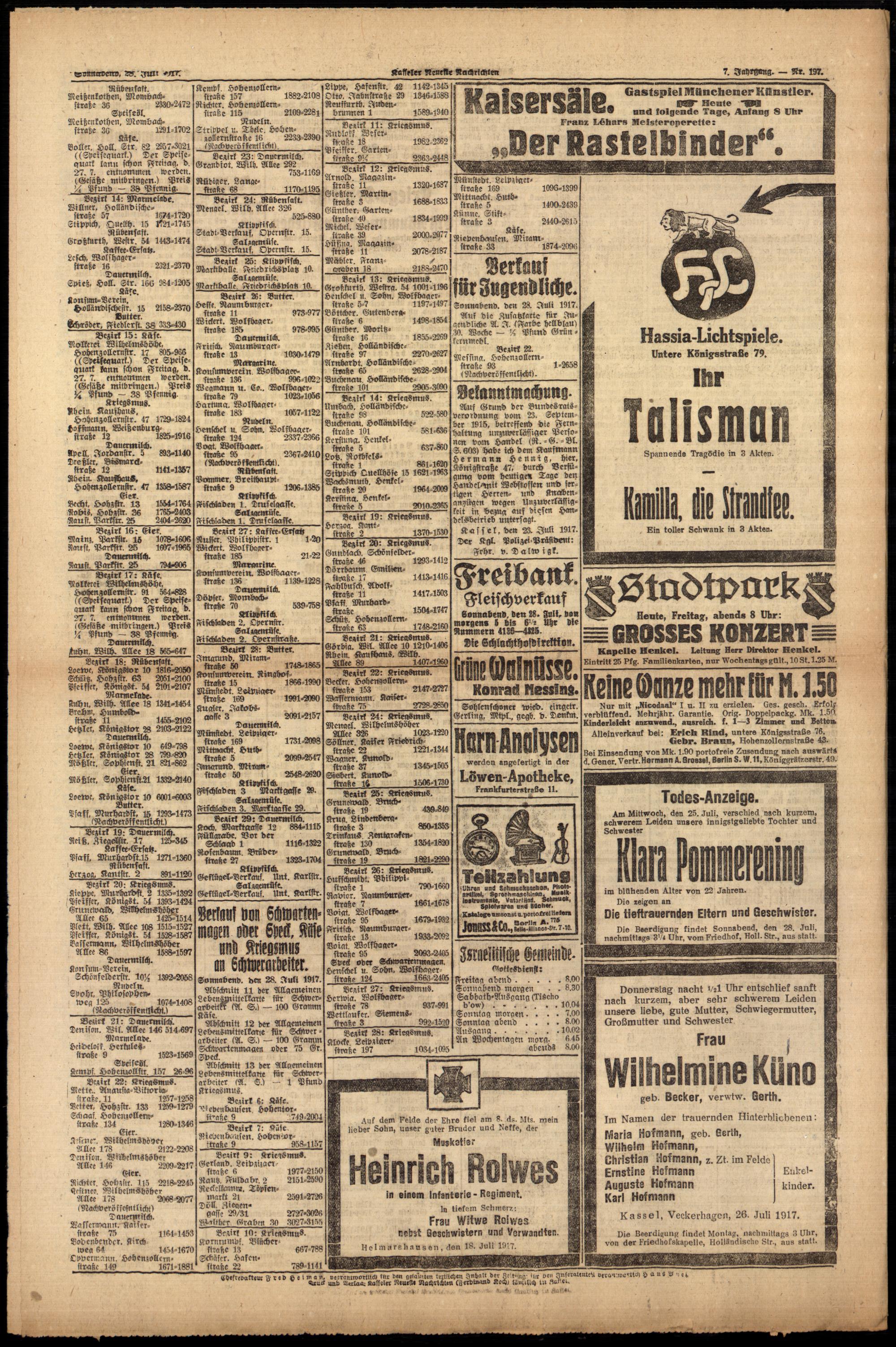 Casseler neueste Nachrichten. 1914-1918