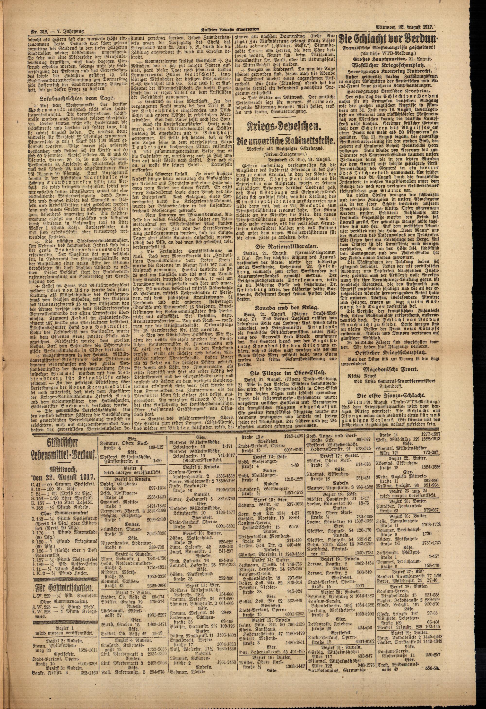 Casseler neueste Nachrichten. 1914-1918