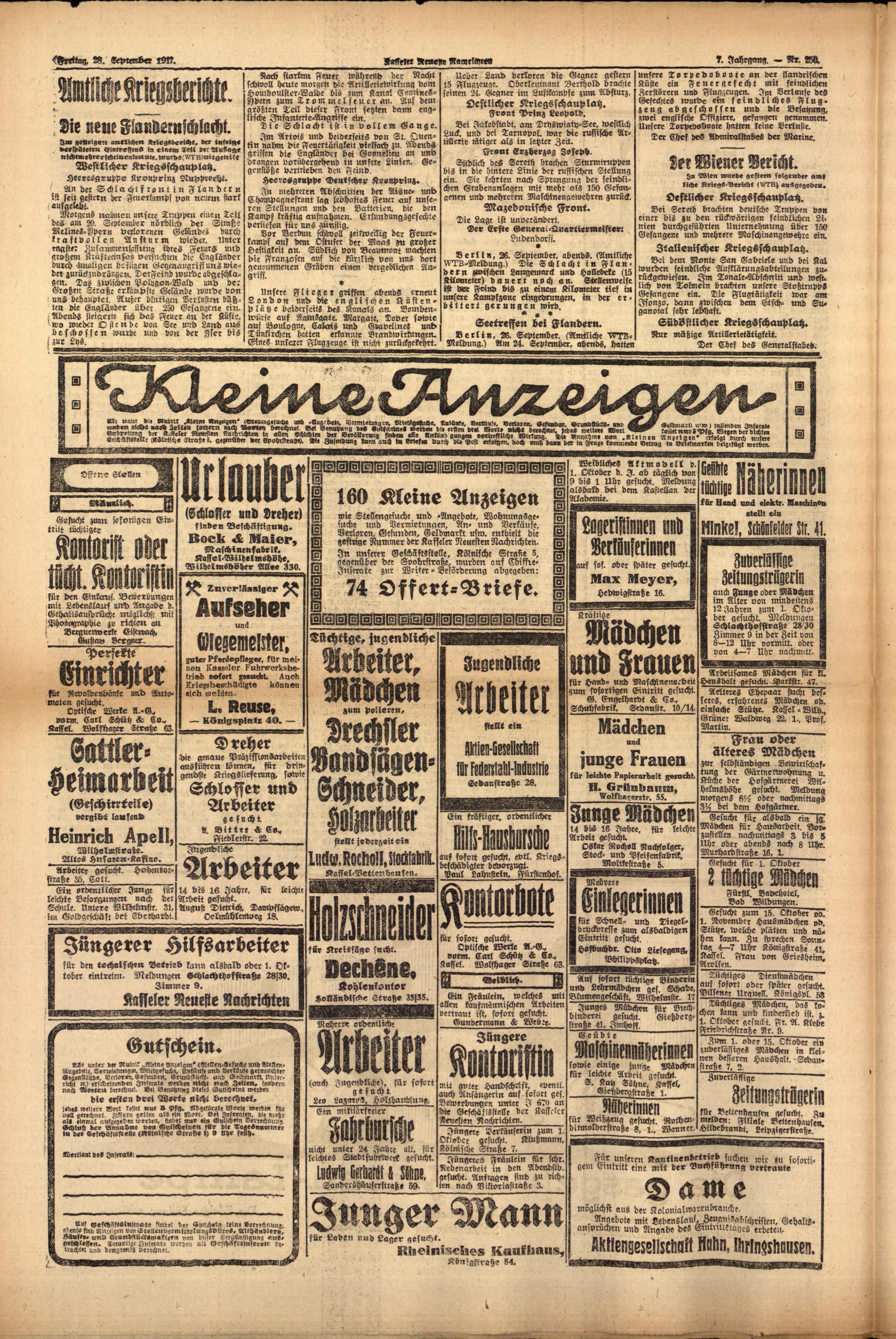 Casseler neueste Nachrichten. 1914-1918
