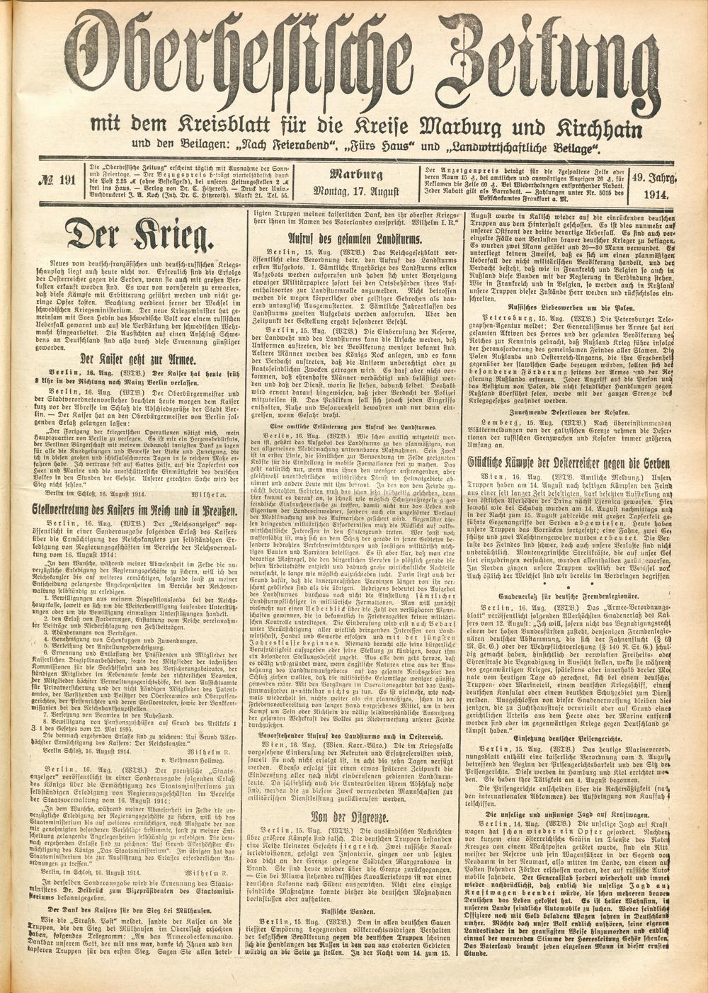 Der Erste Weltkrieg im Spiegel hessischer Regionalzeitungen