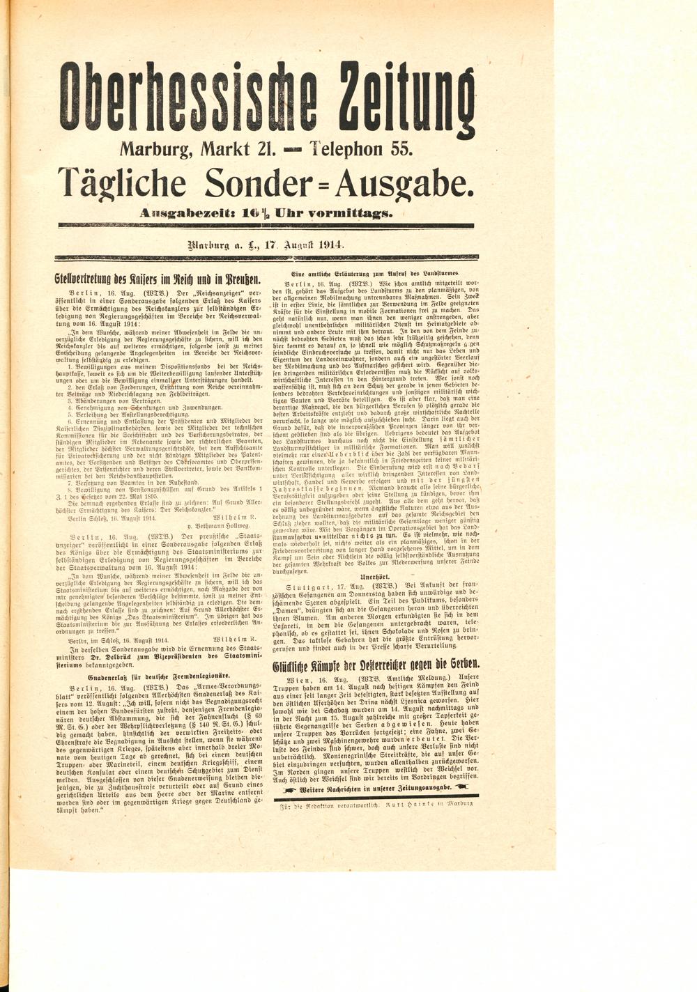 Der Erste Weltkrieg im Spiegel hessischer Regionalzeitungen