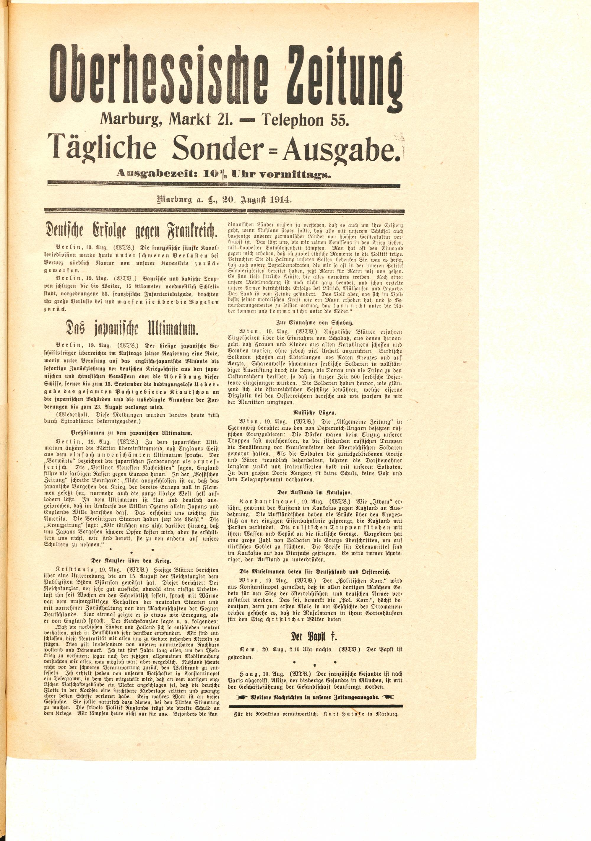 Der Erste Weltkrieg im Spiegel hessischer Regionalzeitungen