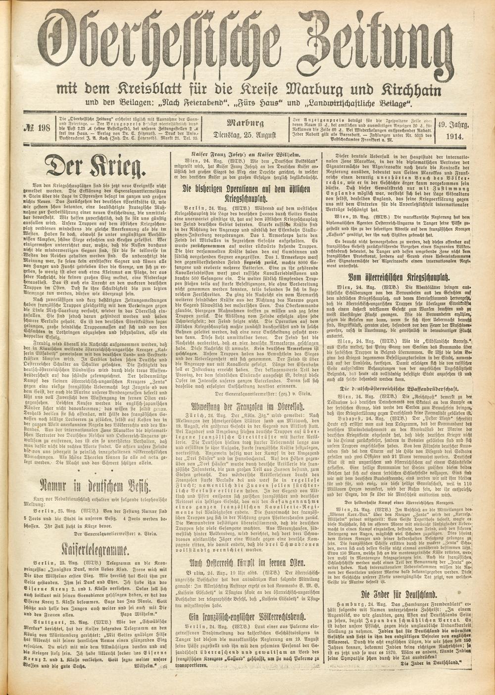 Der Erste Weltkrieg im Spiegel hessischer Regionalzeitungen