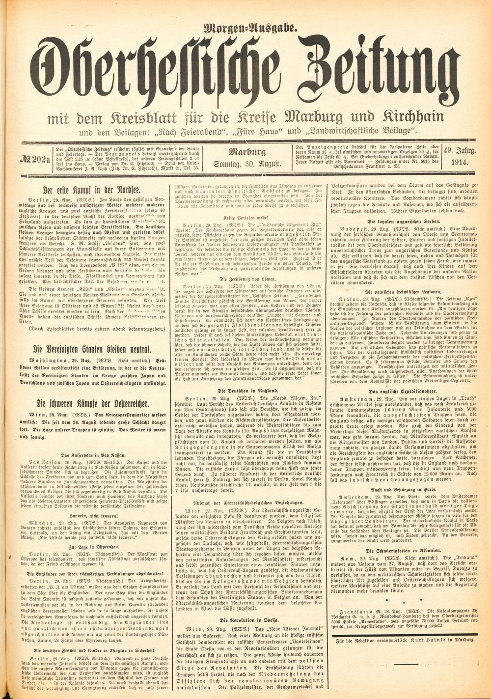 Der Erste Weltkrieg im Spiegel hessischer Regionalzeitungen