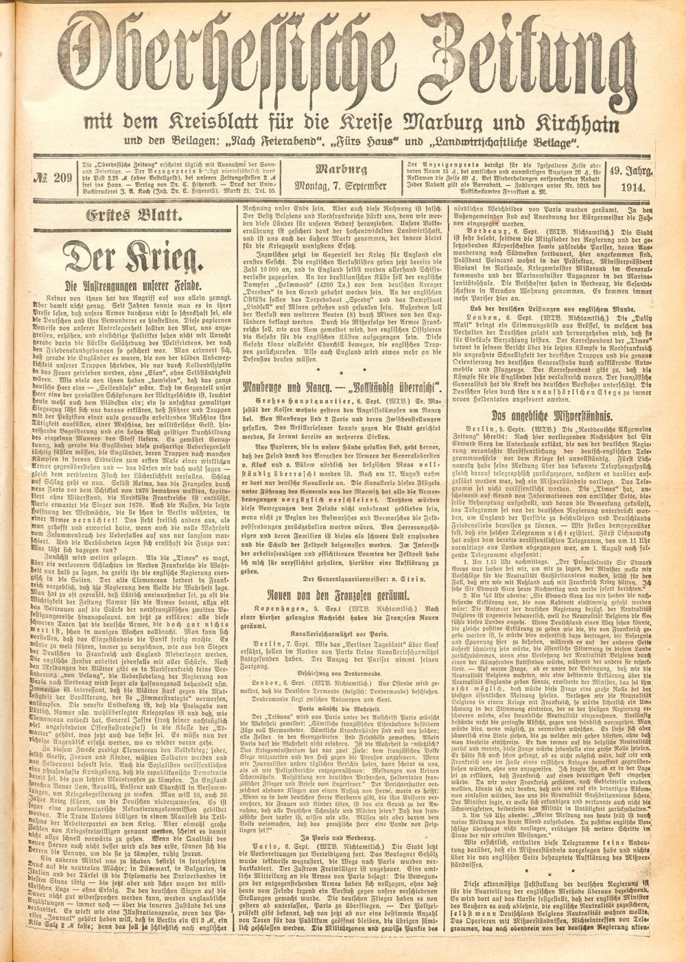 Der Erste Weltkrieg im Spiegel hessischer Regionalzeitungen