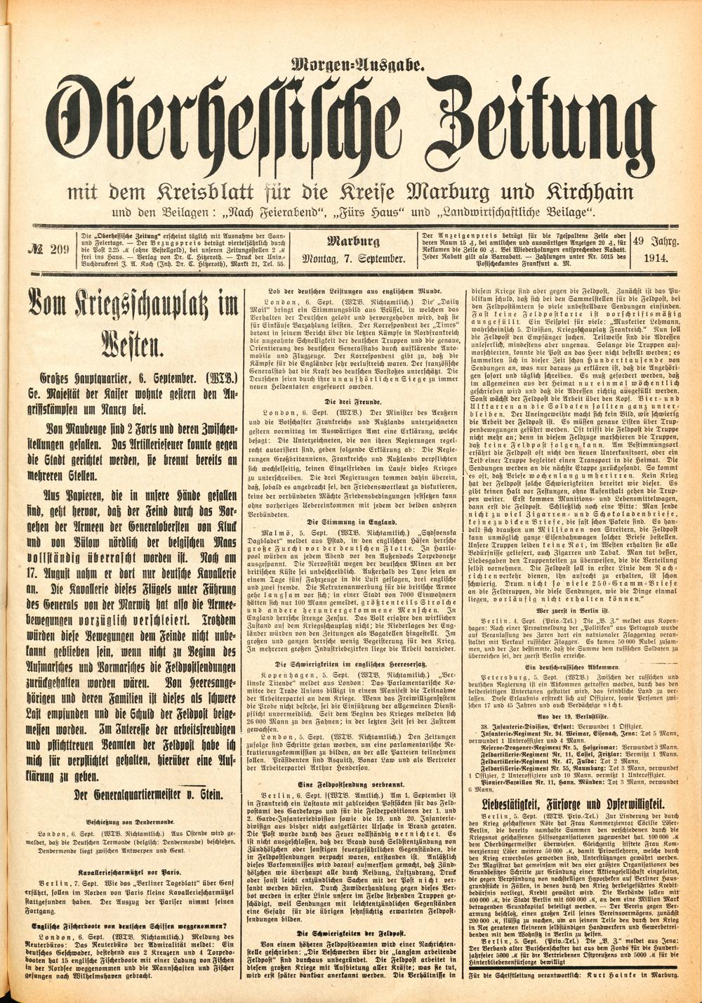 Der Erste Weltkrieg im Spiegel hessischer Regionalzeitungen