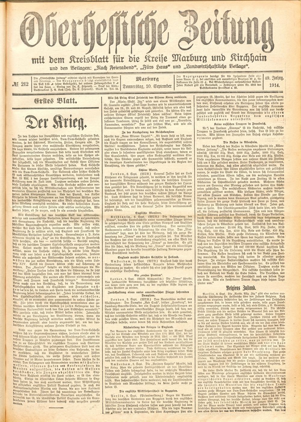 Der Erste Weltkrieg im Spiegel hessischer Regionalzeitungen