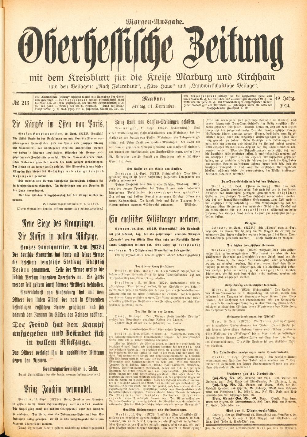 Der Erste Weltkrieg im Spiegel hessischer Regionalzeitungen