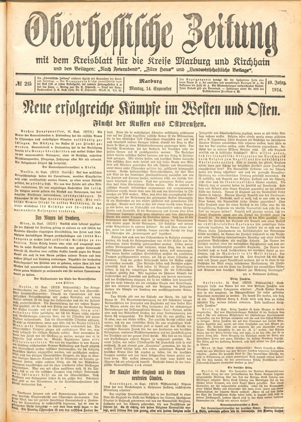 Der Erste Weltkrieg im Spiegel hessischer Regionalzeitungen