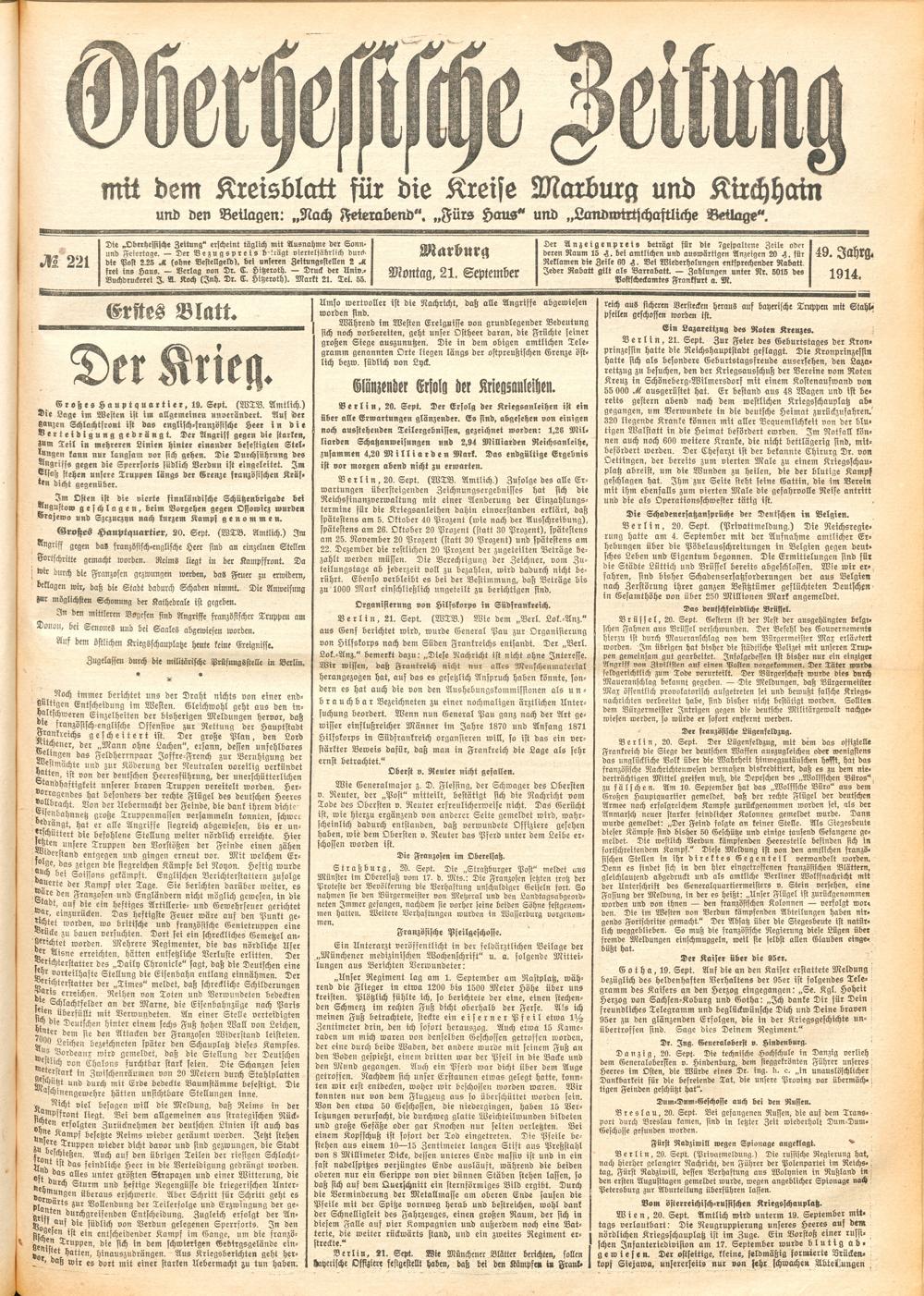 Der Erste Weltkrieg im Spiegel hessischer Regionalzeitungen