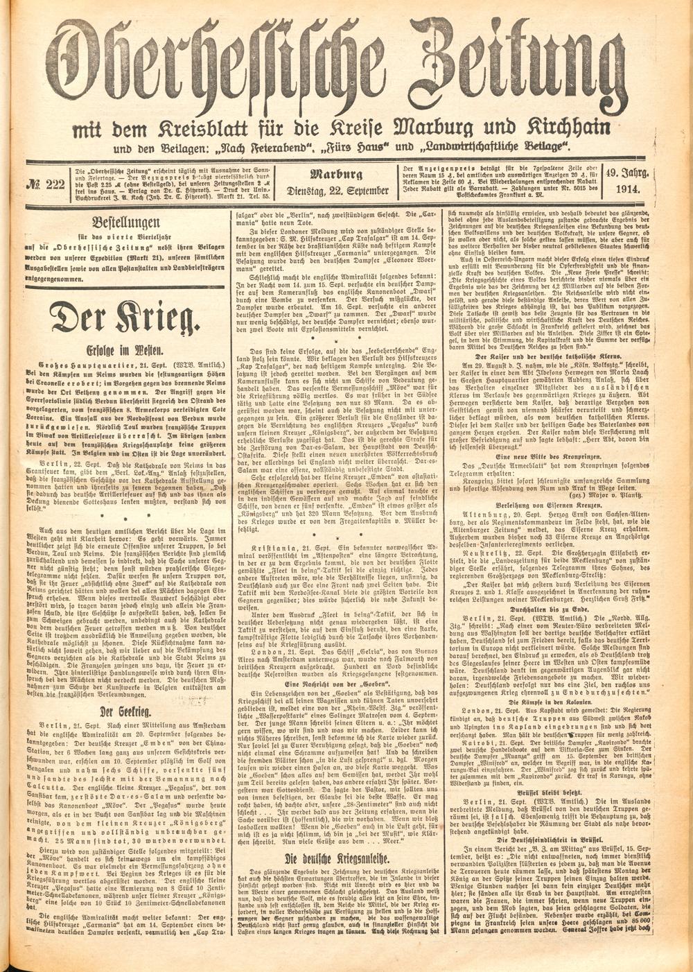 Der Erste Weltkrieg im Spiegel hessischer Regionalzeitungen