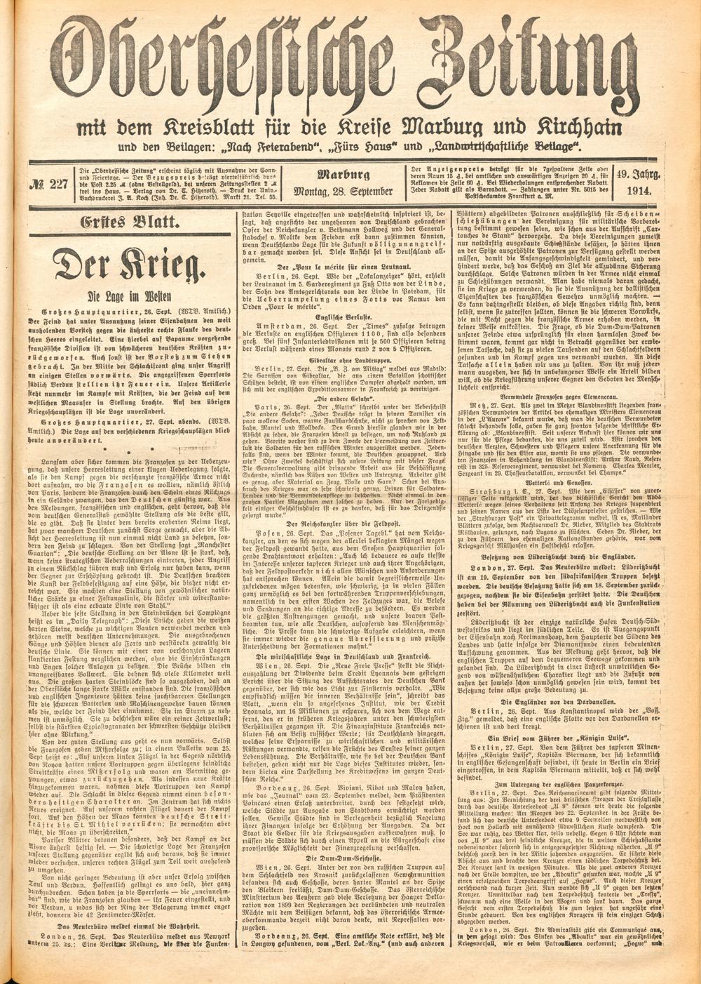 Der Erste Weltkrieg im Spiegel hessischer Regionalzeitungen