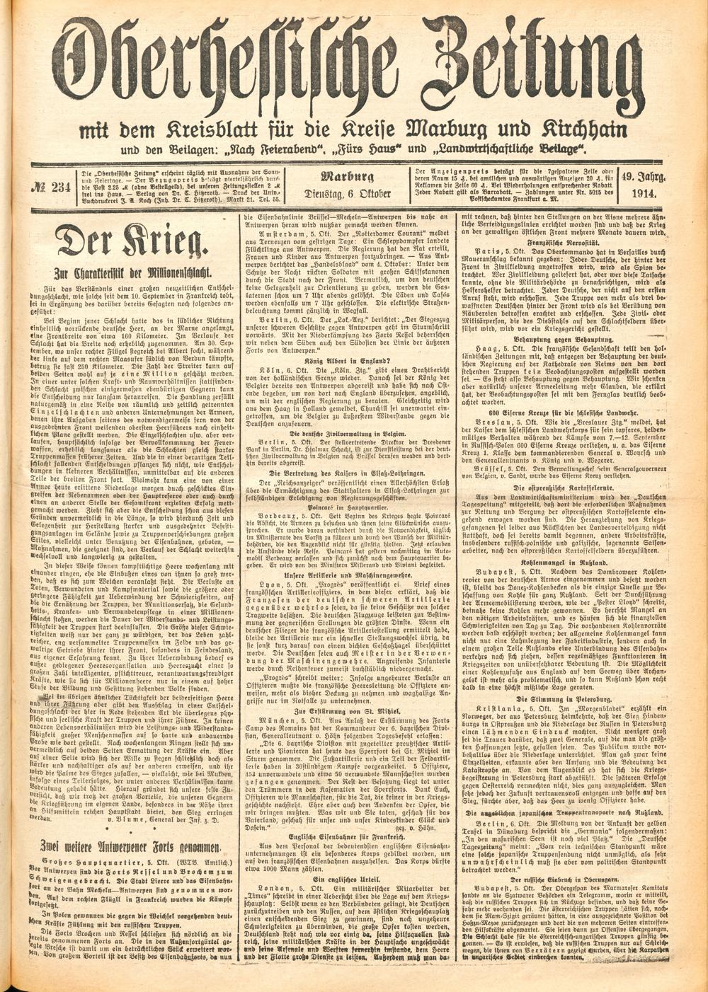 Der Erste Weltkrieg im Spiegel hessischer Regionalzeitungen