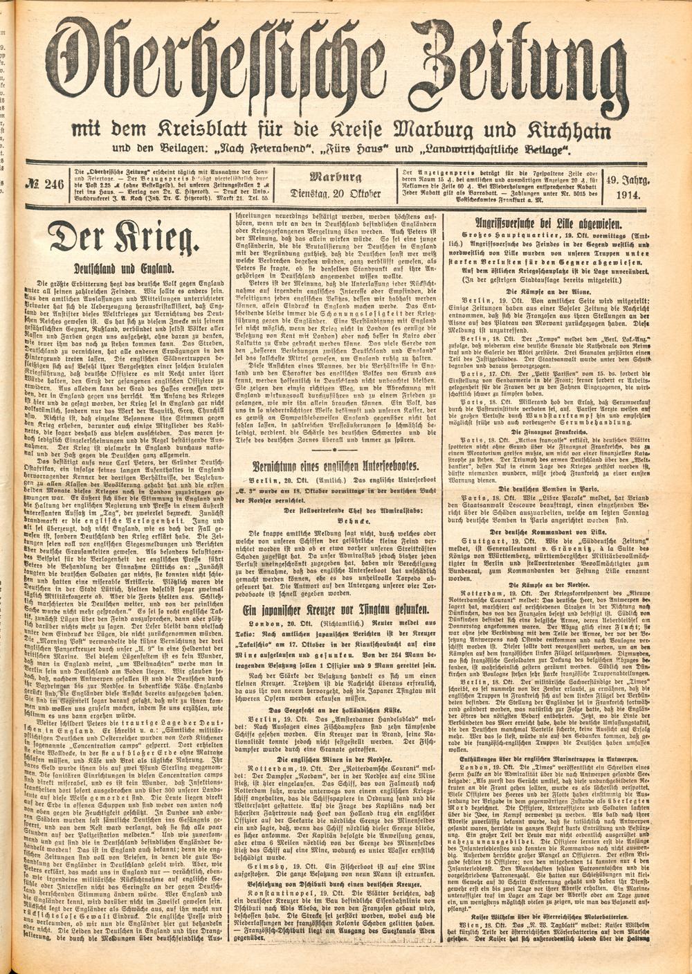 Der Erste Weltkrieg im Spiegel hessischer Regionalzeitungen