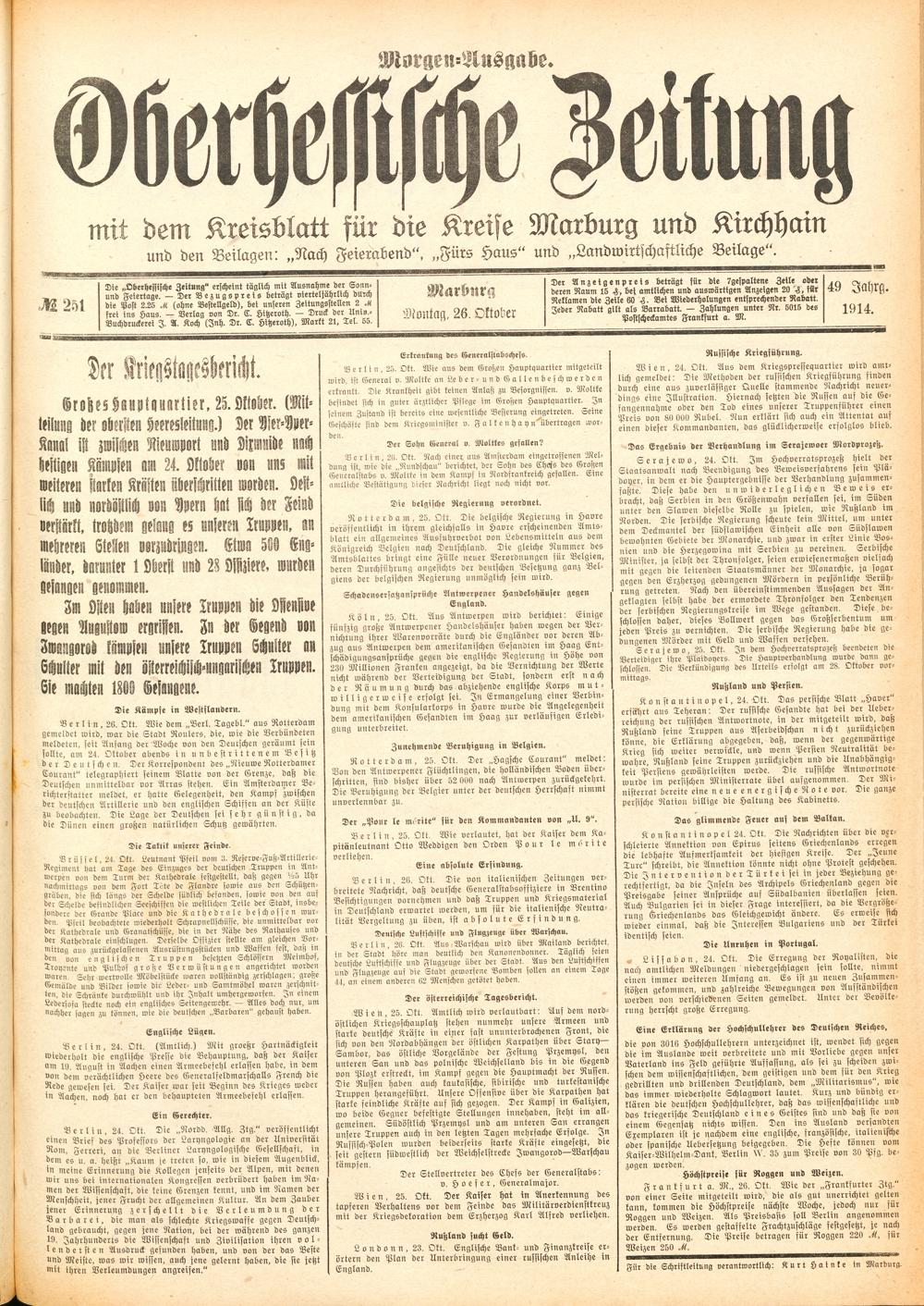 Der Erste Weltkrieg im Spiegel hessischer Regionalzeitungen