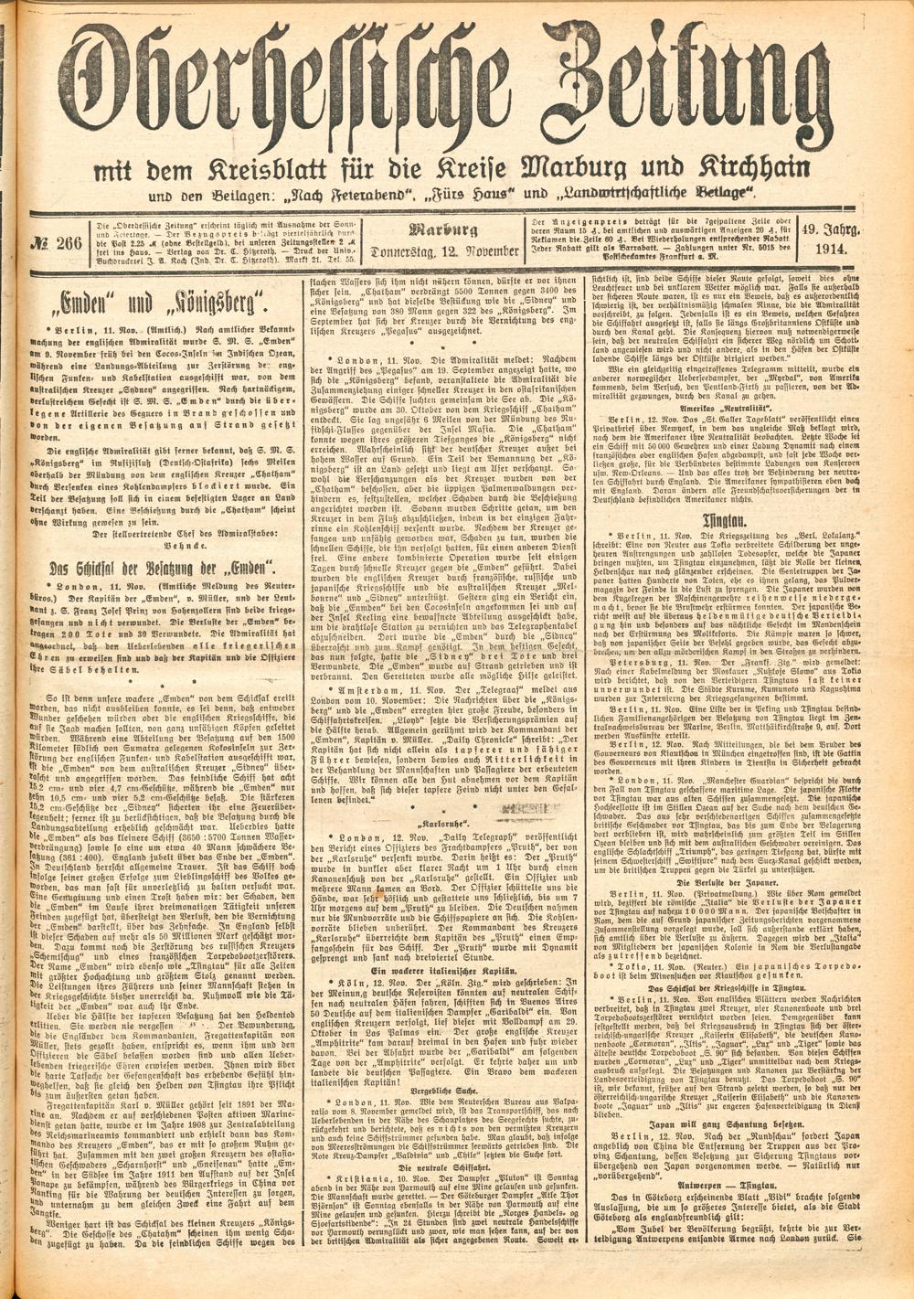 Der Erste Weltkrieg im Spiegel hessischer Regionalzeitungen