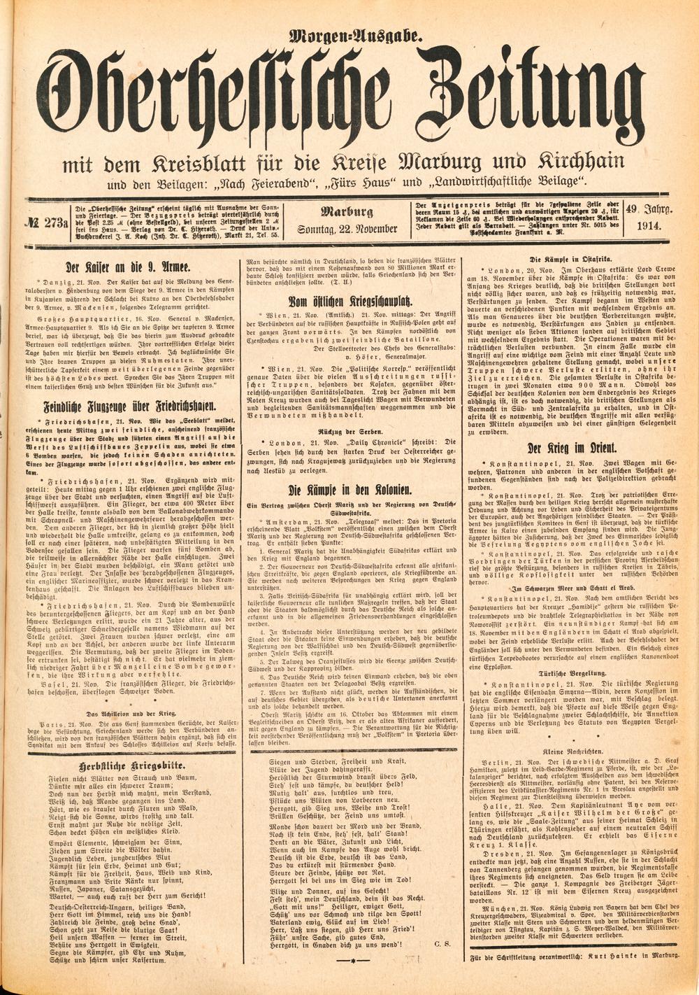 Der Erste Weltkrieg im Spiegel hessischer Regionalzeitungen