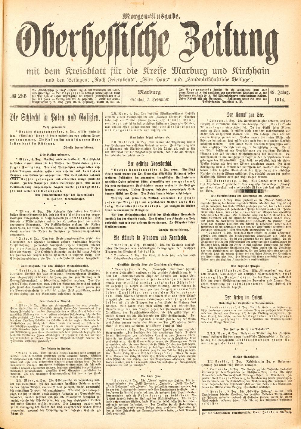 Der Erste Weltkrieg im Spiegel hessischer Regionalzeitungen