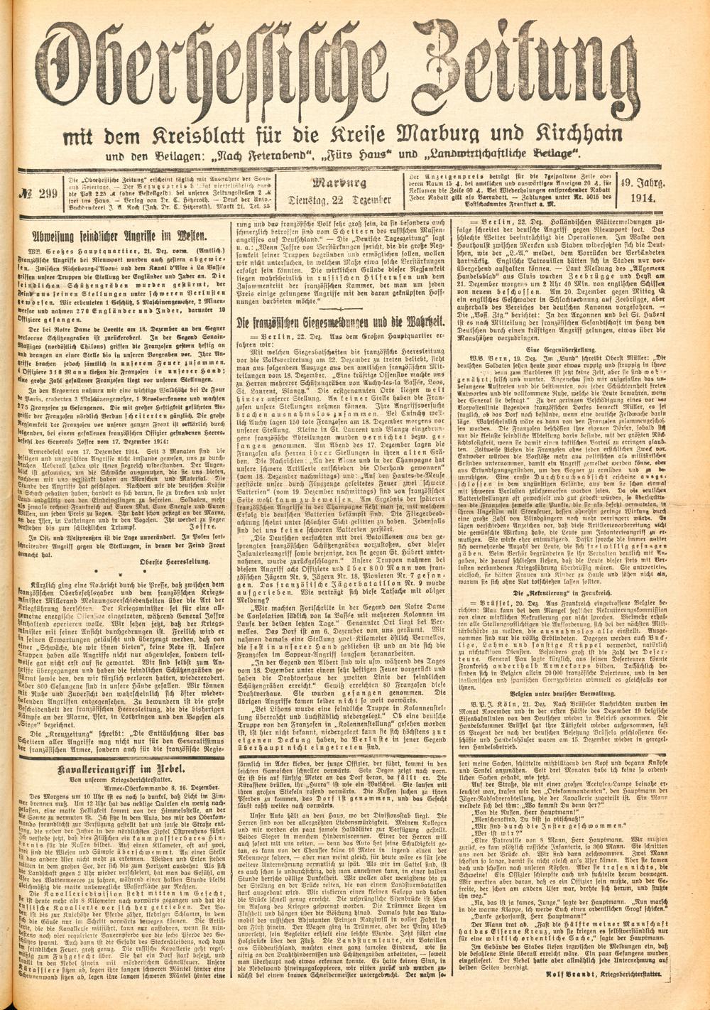 Der Erste Weltkrieg im Spiegel hessischer Regionalzeitungen